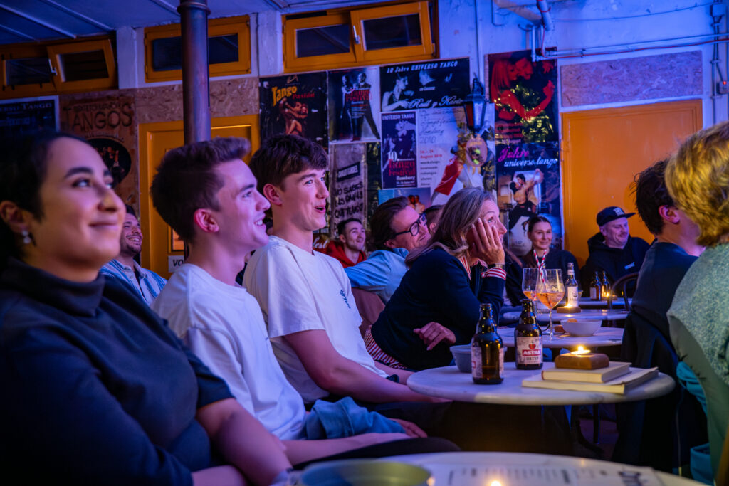 Seit 2018 steht der Moin Comedy Club für ehrliche Stand-up-Comedy, wie man sie sonst nur aus New York oder London kennt – roh, direkt und persönlich. In unserem legendären Keller-Club im Universo Tango erlebst du jeden Abend 5–8 Comedians live auf der Bühne: die Stars von heute und die Legenden von morgen. Egal ob moderner Stand-up, Kabarett oder Musik-Comedy – wir stellen für jede Show ein individuelles Line-up zusammen. Keine Show ist wie die andere.